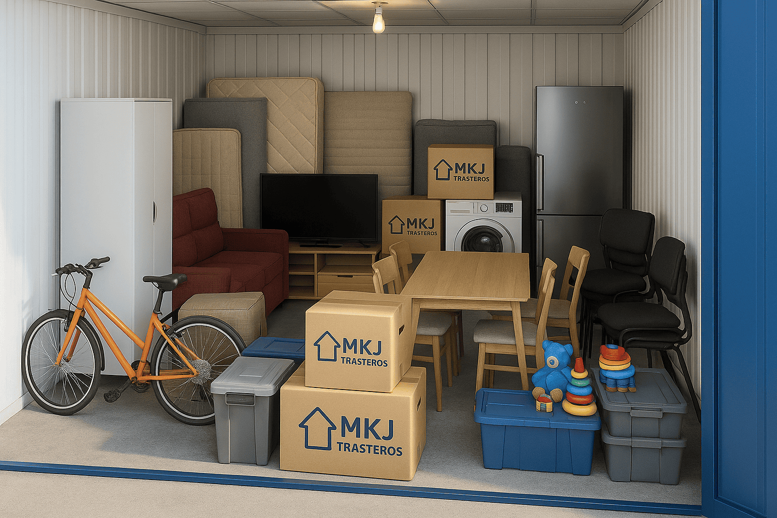 Con este trastero puedes guardar desde sofás, camas, electrodomésticos, cajas, estanterías, palés de mercancía, maquinaria profesional o incluso una moto. Es muy elegido por autónomos, familias numerosas o empresas en expansión.